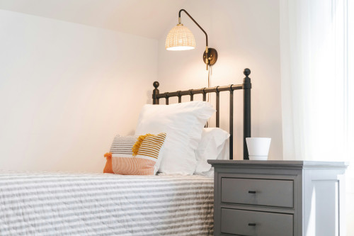 Et vægmonteret skrivebord er perfekt til små rum, hvor pladsen er begrænset. Det kan foldes op, når det ikke er i brug, og giver et let og luftigt udtryk i indretningen.